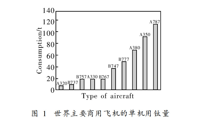日本鈦加工材市場規模很大,但應用于航空領域的鈦材不足3%[2l。中國航空鈦材用量占國內鈦材總用量的11%~15%13.寶雞鈦業股份有限公司是中國最大的鈦及鈦合金材生產企業,在國內鈦材市場占有率高達40%以上,在國內航空與軍工鈦材市場占有率達90%。該公司在波音公司和空客公司所占鈦材訂貨比例也逐年增加。