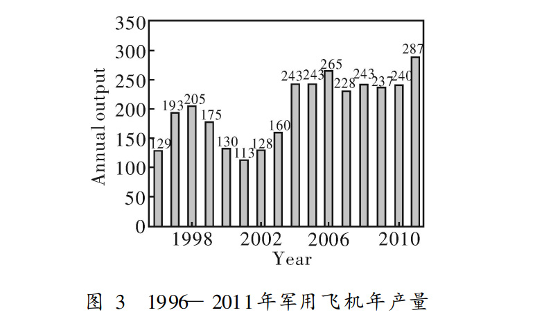 歐洲擁有世界領先水平的直升機制造技術,多年來歐洲直升機一直占有50%以上的世界市場份額,每年鈦材用量約350.據預測,歐洲軍用戰斗機、教練機和軍用運輸機將從2006年的86架增加到2011年的95架,鈦材用量也將從 2006年的539t,增加到2011年的648t。美國航空公司和俄羅斯航空企業都正在試圖向巴基斯坦、印度、馬來西亞和日本推銷更多的戰斗機,競爭異常激烈。美國的公司非常想跟歐洲軍工企業進行合作,共同開發新一代直升機和新一代的陸軍專用運輸機。圖3示出了1996一2011年軍用飛機年產量。