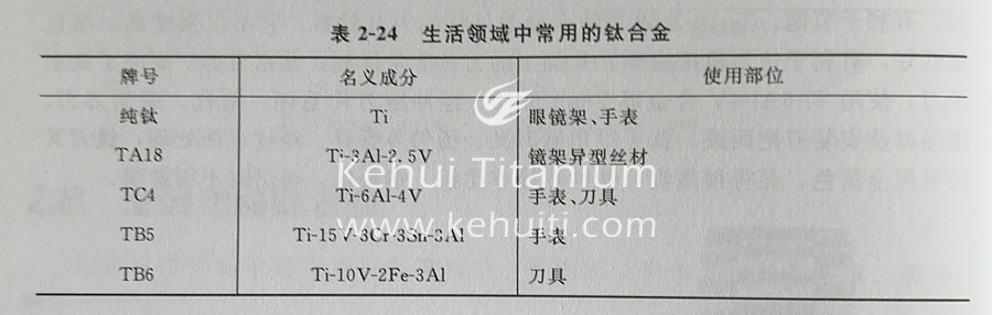 以下表格列出了生活領域中常用的鈦合金及它們使用的部位和原則。