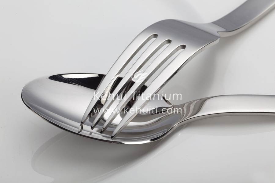 鈦是一種既不生銹又對人體無害的廚房用金屬材料。用鈦可做成炒鍋、菜刀、剪刀、勺、叉、容器等炊 具和餐具。鈦鍋不生銹,耐鹽、酸、醋、堿等各種食品及添加劑的腐蝕,使用壽命長,鈦 熱容量小,升溫快,有利于節能。T10-23型鈦合金是最佳的刀具材料,它不僅強度高,而且塑性好,有利于 仿形機床成形,其加工的刀具非常鋒利。北京刀剪廠研制了鈦水果刀,使用T6A14V合金厚2mm板材,經沖 壓刀片毛坯、鉆孔、磨削刀刃拋光以及安裝刀把面成。鈦可以用做刀叉、湯勺等餐具。經過表面處理, 鈦刀叉可呈現金黃色,顯得很高貴,鈦的熱導率比鋁、鋼要低,遇熱時不很燙嘴器。