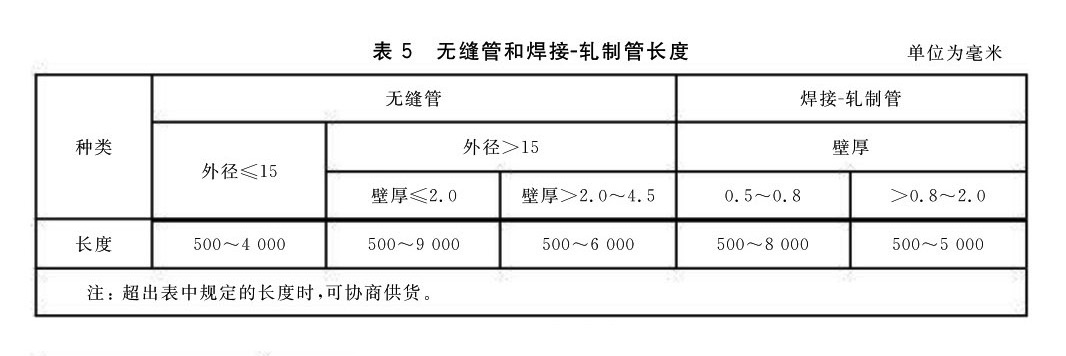 3.2.2 管材的長度應(yīng)符合表5和表6的規(guī)定。