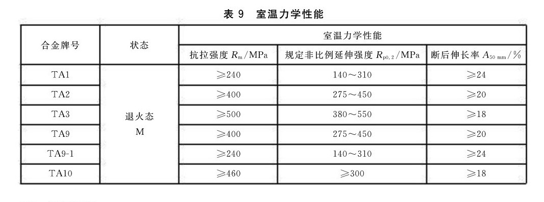 3.4.1 管材在供應(yīng)狀態(tài)下的室溫力學(xué)性能應(yīng)符合表9的規(guī)定,規(guī)定非比例廷伸強(qiáng)度R,在需方要求并在合同中注明時(shí)方予測試。