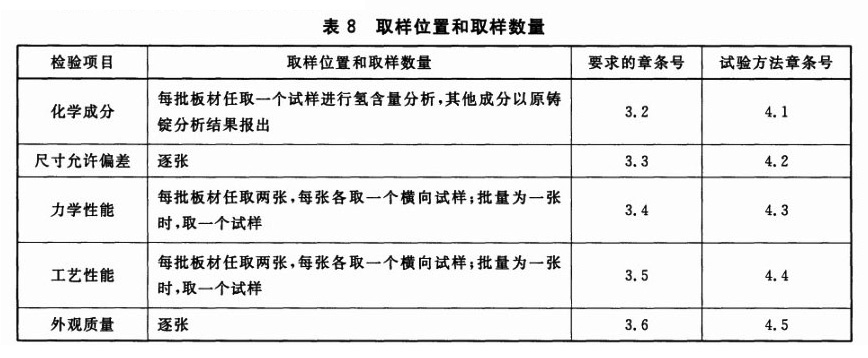 每批板材均應進行化學成分、尺寸偏差、力學性能、工藝性能和外觀質量的檢驗。