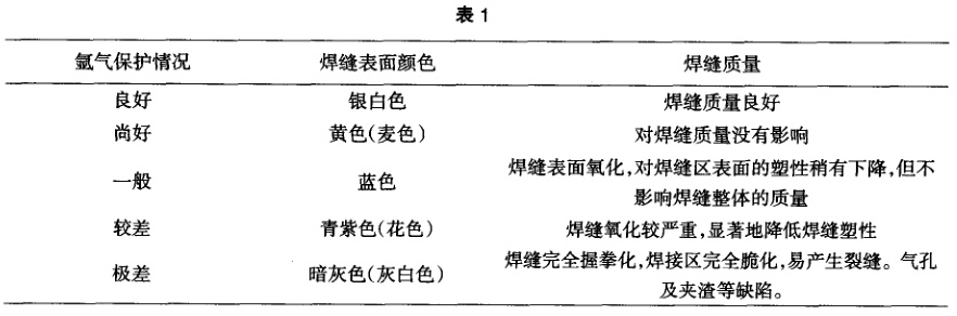 的保護效果?傊,采用合理的保護裝置、設施及焊接工藝才能保證有合格的焊接質量 ,具體產生的影響如下表 1: