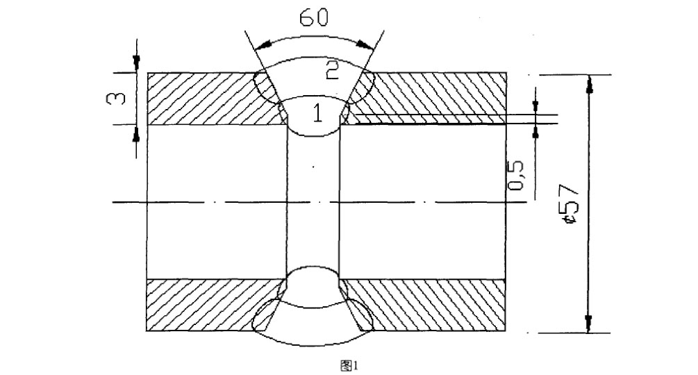 根據制訂的焊接工藝方案,進行了兩次焊接工藝試驗,第一次焊接試驗焊了2對鈦管(試件編號TA2一1、TA2一2),第二次焊接試驗焊了3對鈦管(試件編號TA2—3、TA2—4、TA2—5),試件形式及尺寸見圖1。