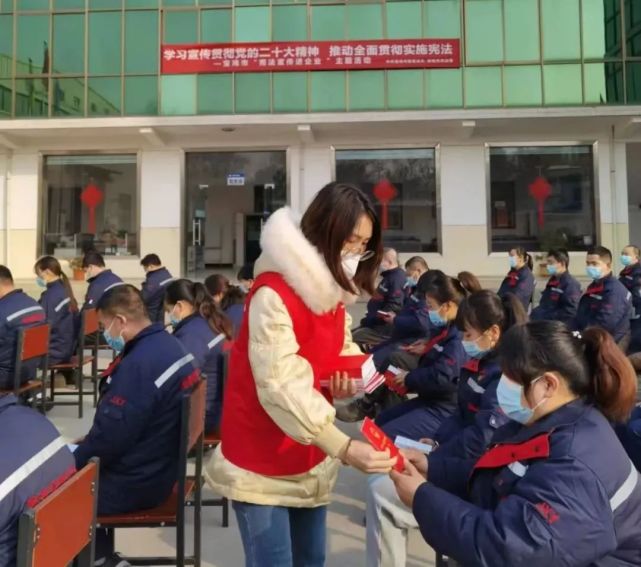 為進一步弘揚憲法精神,護航企業(yè)健康發(fā)展,12月6日,中共寶雞市委普法辦、寶雞市司法局、高新區(qū)司法局組成“送法小分隊”,走進寶雞市聚鑫源新材料有限公司聯(lián)合開展“學習宣傳貫徹黨的二十大精神 推動全面貫徹落實實施憲法”主題宣傳活動。