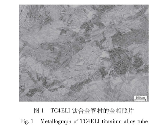 TC4ELI屬于中強高韌型低間隙鈦合金,它最早是以“ 損傷容限” 的概念在飛機結構設計中提出的,是國外應用最為廣泛的鈦合金[2,3]。國內也相繼對其進行了研究與開發,但TC4ELI鈦合金加工變形抗力較大,其產品多以板材、鍛件居多,而在大直徑管材制備方面鮮有報道。關于TC4ELI常規材料組織與性能的研究較多,相關文獻[4,5]報道稱,斷裂韌性與熱處理制度有很大關系,隨著固溶處理溫度的升高,斷裂韌性提高;如果空冷后時效,這種效應會加強;還有文獻[6’7] 稱β區熱處理相對于β變形具有更高的斷裂韌性,歸結為區熱處理后顯微組織的特點是更大的β晶粒尺寸和晶內片狀α相的織構性;前期作者團隊對TC4-DT鈦合金鍛件進行了組織和力學性能研究,結果表明隨著溫度的升高,斷裂韌性得到提高,但相變點以上溫度淬火+ 時效處理會導致沖擊韌性急劇下降[8]。