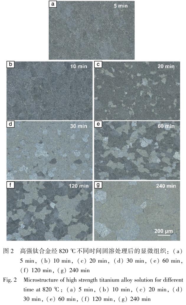 通過調控固溶及時效熱處理制度獲得具有等軸β晶粒及α片層的鈦合金,探究β晶粒尺寸及晶界形貌對超 高強鈦合金力學性能的影響。
