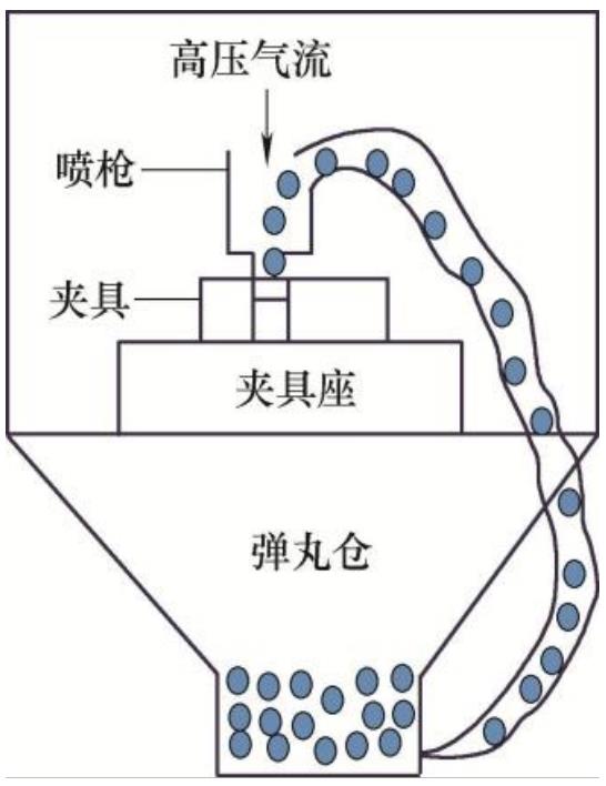 噴丸是一種常用的表面處理方法(圖 2),通過在鈦合金表面噴射高速流動的磨料顆粒,可以改變表面的形貌及物理性質。噴丸強化可以消除表面缺陷和殘余應力,提高鈦合金的疲勞壽命。噴丸會在表面產生壓縮應力,增加鈦合金的抗裂紋擴展能力,延緩裂紋的形成和擴展。表面完整性是指鈦合金材料在機加工等過程中的無裂紋、無缺陷和無殘余應力的狀態。良好的表面完整性可以減少應力集中和裂紋的起始點,提高鈦合金的疲勞壽命。相反,表面缺陷、殘余應力和粗糙度等不良表面完整性因素會降低鈦合金的疲勞性能。噴 丸強化可以通過調控噴丸參數,如噴丸材料、噴丸劑量、噴丸速度等,來控制噴丸后的殘余應力分布。適當的殘余應力分布可以提高鈦合金的抗疲勞性能。通常,產生壓縮應力的噴丸強化可以阻止裂紋的擴展,降低疲勞壽命的衰減速率[2]。