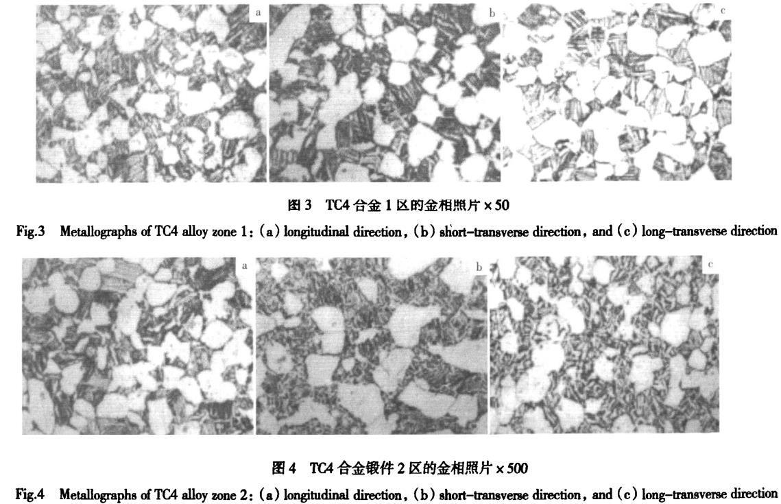 圖3,圖4表明,TC4鈦合金鍛件高倍組織中,縱向、短橫向、長橫向差異很小,均為等軸α+β轉組織。