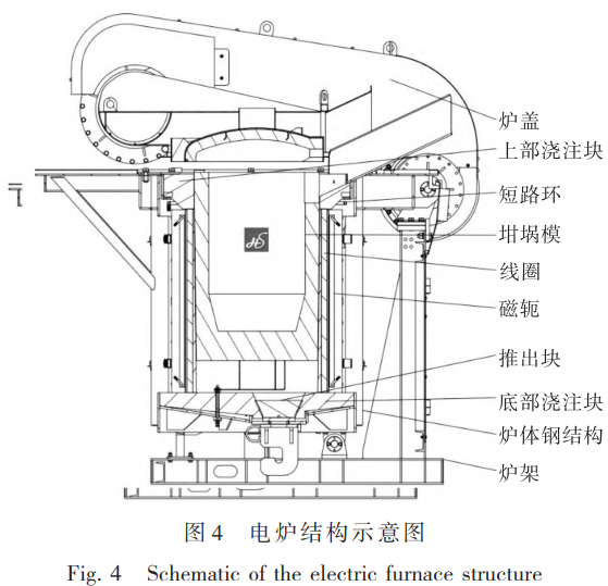 電爐是真空熔煉的核心設(shè)備之一(圖4),它直接影響熔煉過程中金屬的加熱和冷卻。合理設(shè)計電爐結(jié)構(gòu),確保金屬樣品受熱均勻是非常關(guān)鍵的。先進的電爐控制系統(tǒng)可通過精準(zhǔn)控制溫度,確保金屬在熔化和凝固過程中的溫度穩(wěn)定性[15]。冷卻速率直接影響晶體的生長速度和晶格結(jié)構(gòu)。通過調(diào)整冷卻速率,可以控制金屬晶體的尺寸和形狀,從而改善金屬材料的力學(xué)性能和結(jié)構(gòu)均勻性[16]。高度可控的冷卻速率是真空熔煉技術(shù)的一項關(guān)鍵工藝參數(shù)。