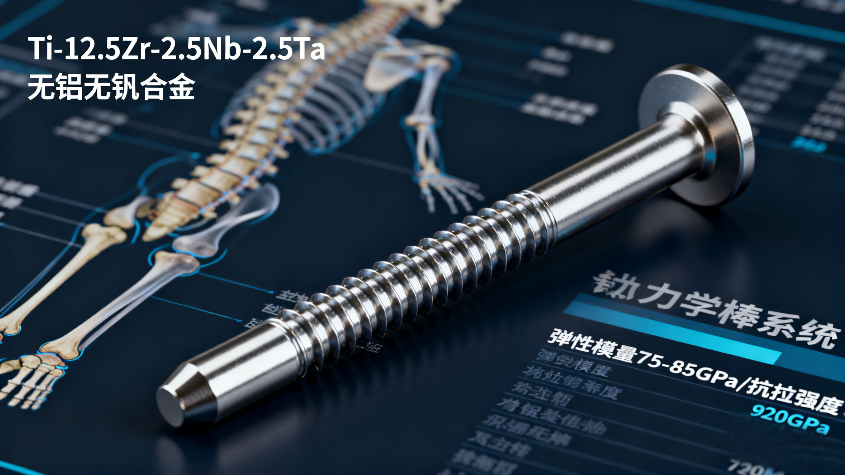 β鈦合金因具備低彈性模量、高塑性及優異生物相容性,成為近十年醫用鈦合金研發的核心方向。用戶提供的《新型醫用鈦合金Ti-12.5Zr-2.5Nb-2.5Ta的研究》系統闡述了無鋁無釩β鈦合金的設計理念,通過Zr、Nb、Ta等中性元素的復合添加,不僅規避了傳統合金的細胞毒性風險,更將彈性模量降至75-85GPa,顯著縮小了與人體骨骼的力學差異。該合金經800℃固溶處理后,抗拉強度達920MPa,伸長率保持在15%以上,實現了力學性能與生物安全性的平衡,已在脊柱植入釘棒系統中完成初步臨床驗證。