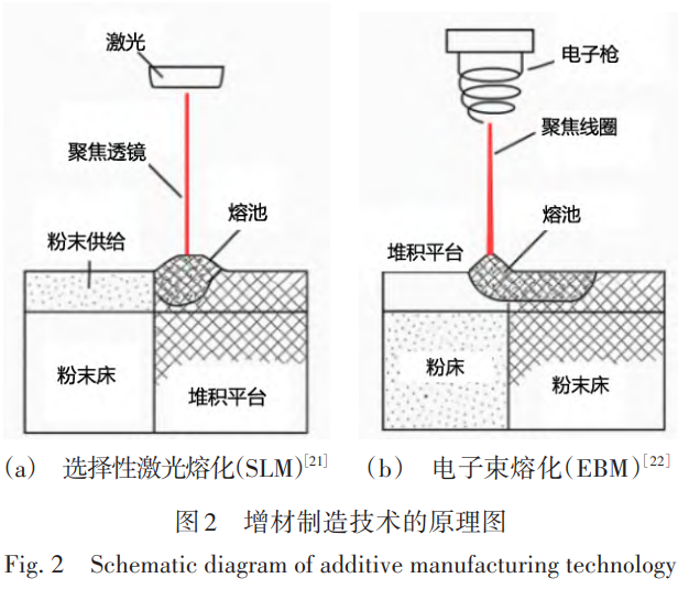 增材制造技術(shù)為鈦合金植入物的生產(chǎn)提供了新途徑,其中選擇性激光熔化 (SLM) 和電子束熔化 (EBM) 是兩種主流的粉末床熔融方法。兩者基本原理相似,均通過高能束流 (激光或電子束) 在金屬粉末床上逐層選擇性熔化材料,實現(xiàn)逐層堆積成型。SLM 采用高功率光纖激光器作為能量源,在惰性氣體保護下熔化金屬粉末,具有較高的成形精度和表面質(zhì)量。而 EBM 則利用高能電子束作為熱源,在高真空環(huán)境中熔化金屬粉末,具備熔化速度快、殘余應(yīng)力控制良好的優(yōu)勢。